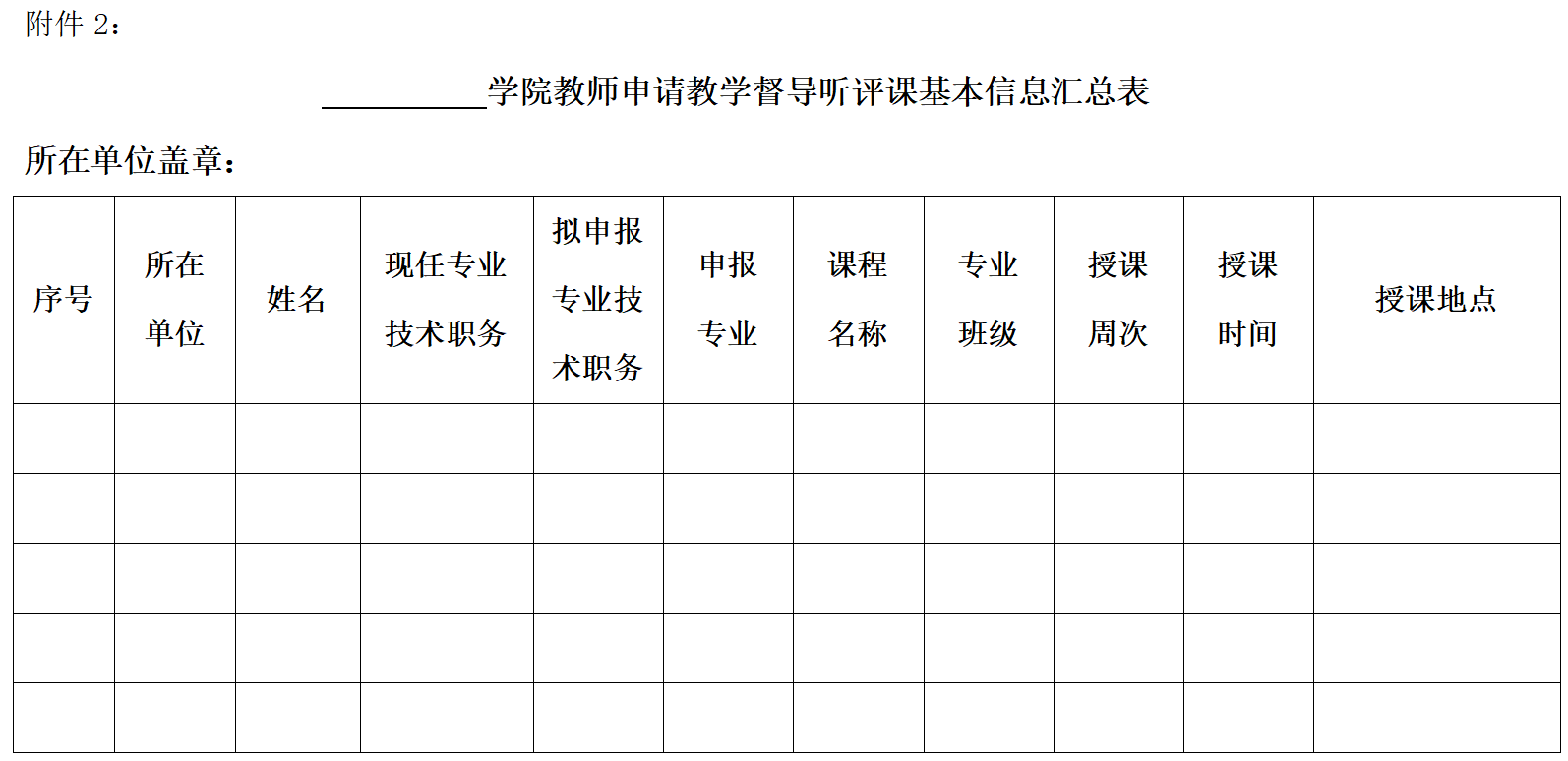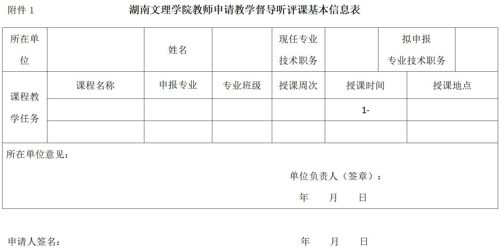 附件:1. 湖南文理学院教师申请教学督导听评课基本信息表