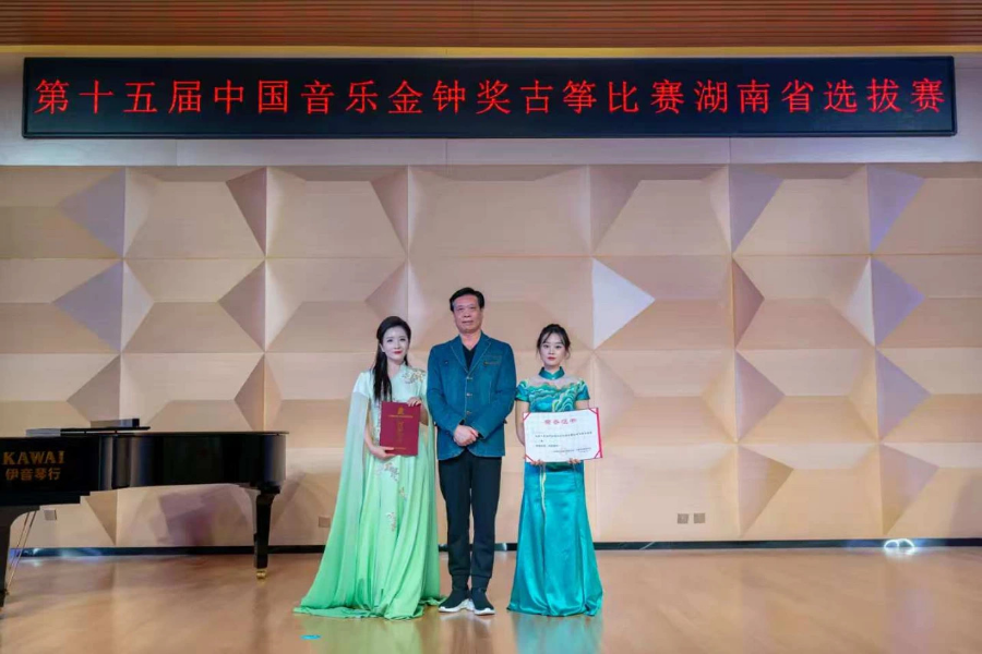 2025年4月21日至28日,由湖南省文学艺术界联合会、湖南省音乐家协会联合主办的第十五届中国音乐金钟奖湖南选拔赛在长沙、邵阳两地同步举行。本届赛事吸引了全省13个市州选送的230余名青年音乐才俊同台竞技,经过为期一周的激烈角逐,我院古筝专业教师付乐及其指导的2022级学生王一淋凭借卓越的艺术表现力,分获古筝组金奖与铜奖,成为本届赛事中唯一实现师生同台获奖的教学组合。